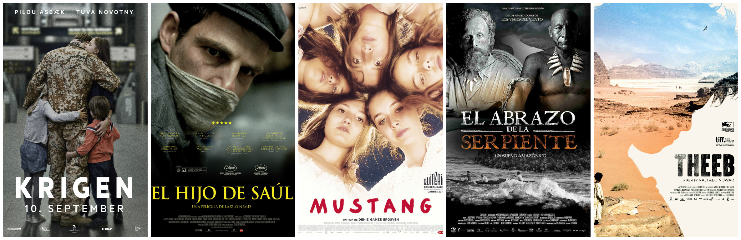 Por el momento, échenle una mirada a quienes compiten por el galardón: Mustang, una peli francesa dirigida por Deniz Gamze Ergüven. El hijo de Saul, una película húngara dirigida por László Nemes. Theeb, una producción jordana del director Naji Abu Nowar y A war, una producción de Dinamarca dirigida por Tobias Lindholm. Y si no han visto El Abrazo de la serpiente, ya es hora, está de nuevo en salas de cine nacionales. Acá los dejamos con el tráiler.