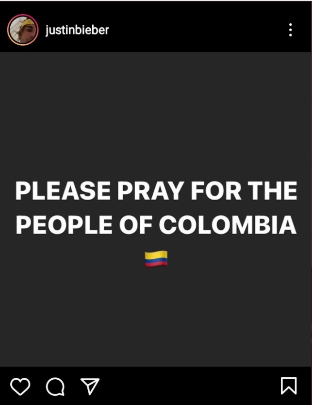 Desde el 28 de abril, día que comenzaron las movilizaciones, varios artistas colombianos expresaron su apoyo al paro nacional y sus críticas al proyecto de reforma tributaria, que convocó a las personas a las calles. Pero con el pasar de los días y al ver cómo las ciudades del país se están convirtiendo en zonas de guerra, artistas, deportistas, músicos, influencers han comenzado a usar sus redes para denunciar los abusos que se han registrado y las muertes que se han producido. También muchas de estas celebridades han usado estos espacios para pedir al Gobierno Nacional que abra un diálogo.
