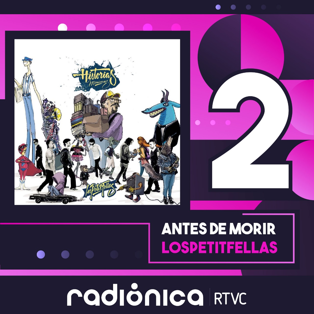 Continuando con las canciones de la década de Radiónica, nos encontramos con historias que han logrado traducir nuestras cotidianidades, es así como nos encontramos con un poderoso himno dedicado al afecto: Antes de Morir de LosPetitFellas, un tema que traduce perfectamente las sensaciones de vida que se registraron en la presente década.