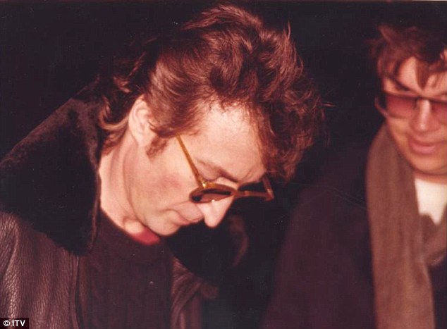 Mark Chapman pidíendole un autógrado a John Lennon horas antes de asesinarlo