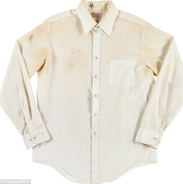 Esa sangre que le quedó en su uniforme, hoy después de 36 años es aún visible, junto a otros desgastes del tiempo, como lo pueden ver abajo. Hastings guardó en silencio la camisa durante todos estos años pensando que era un objeto  importante que no podría ser vendido, pero tiempo después se dio cuenta  del valor para contar la historia  de la música, o tal vez necesito del dinero. Algo macabro pero rentable, pues la subasta que empezó con 9 mil dólares llegó hasta los 39 mil dólares, unos 117 millones de pesos, nada mal.