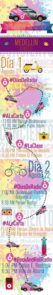 Recorreremos en dos días (21 y 22 de agosto) algunos de los sitios más importantes de la capital antioqueña y sus alrededores. Aquí pueden encontrar el recorrido, con las horas y los lugares. Prográmense, armen parche, acompáñennos y disfruten de todo lo que les tenemos preparado, porque con ustedes salvamos el mundo y hablamos un lenguaje: La música