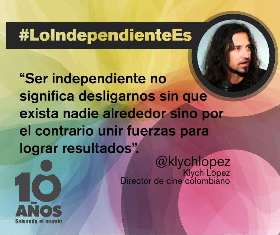 "Soy Klych López, director de cine. Yo opino que lo independiente en el arte es alejarnos cada vez más de ser radicales y por el contrario escuchar de muchos frentes elementos que nos llenen y nos den argumentos para ir creando una identidad como artistas. Ser independiente en el arte es salir adelante no importa que se ganen premios, auspicios o plata del Gobierno, ser independiente en el arte es abrirse campo con lo que se tenga a la mano sin dejar que la mente pare, seguir creando.