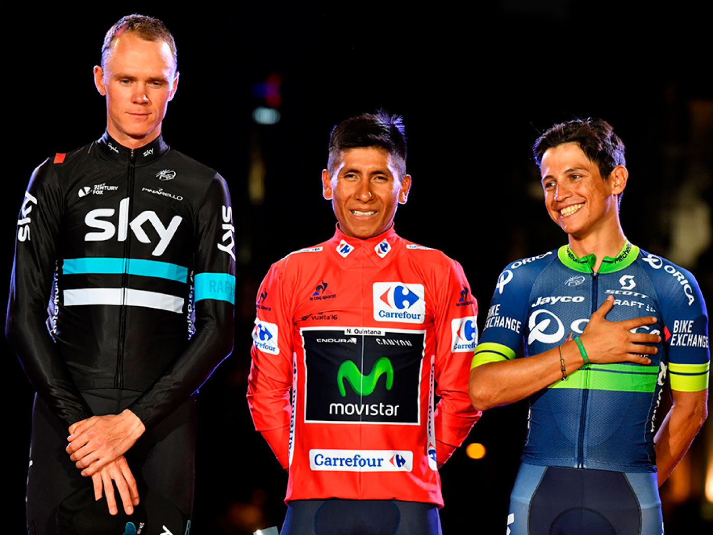 Este año Nairo se bajó de la bici, producto del gran esfuerzo que supuso correr el Giro de Italia y el Tour de Francia. Por ende, las miradas quedan puestas en ‘Chavito’ (del equipo Orica-Scott) quien terminó sin inconvenientes el Tour. Su proceso en ‘La Vuelta’ ha venido en ascenso, como su andar por las carreteras europeas: 2014 puesto 41, 2015 quinto y 2016 tercero.