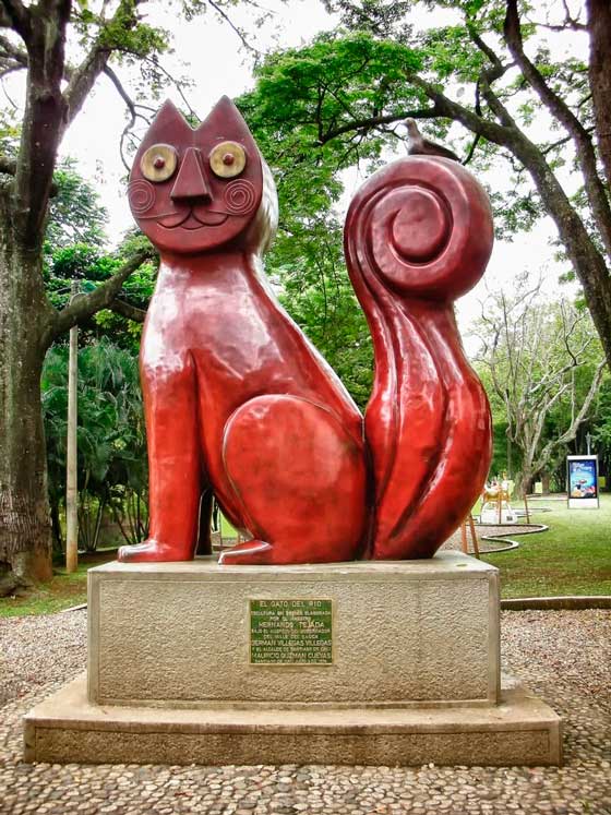 Santiago de Cali tiene un ejemplar único desde 1996, cuando llegó a la ciudad el Gato del Río, obsequio del escultor Pereirano Hernando Tejada. Y que como si el monumento de 4.5 metros no fuera suficientemente atípico, hoy está acompañado de un exótico grupo de gatas que posan a diario en esa zona del Oeste de la capital del Valle del Cauca.