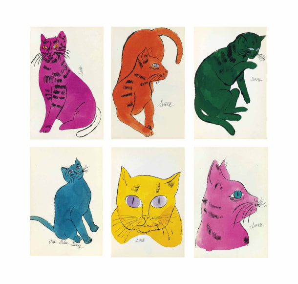 El mundo pop no se ha quedado por fuera de estos amoríos. Andy Warhol (1928-1987), artista insignia de esta corriente, estuvo familiarizado con los felinos desde su infancia. Con 25 gatos, el artista los plasmó en dibujos con ayuda de su madre y luego, en un libro que trató sobre las aventuras de ellos en el paraíso.