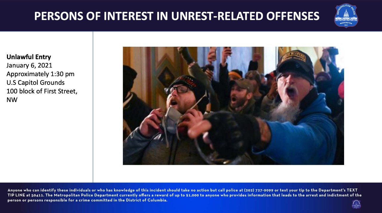 La página oficial de la Policía Metropolitana de Washington D.C. ha ofrecido una recompensa de 1000US a quienes den información de los involucrados en la toma del Capitolio del pasado 6 de enero.