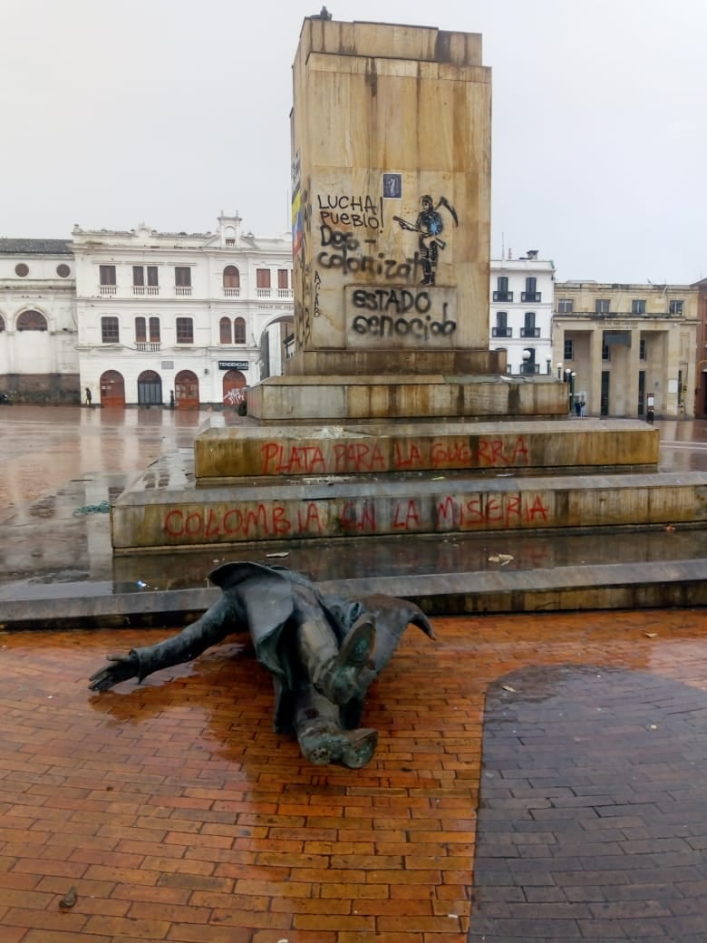 El 1 de mayo de 2021 la estatua de Nariño cayó. El pedestal no duró ni 24 horas sin su figura, después de los sucesos fue instalada inmediatamente y resguardada por la autoridad policial. Para Jaime, “el tema de volver a ubicar la estatua, tiene que ver con mantener el orden que se ha planteado como algo intocable en este estado. También, en función de que la gente entienda que hay una sola institucionalidad, que se ha posesionado por más de 200 años en Colombia y debe respetarse”.