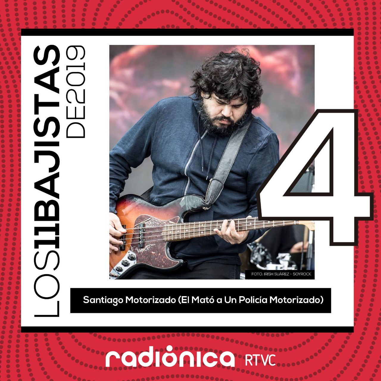 Bajo profundo, perfecto para cada canción, dato importante, Santiago también canta y su voz, junto a su bajo son capaces de encender corazones con ternura, euforia, melancolía y rabia.