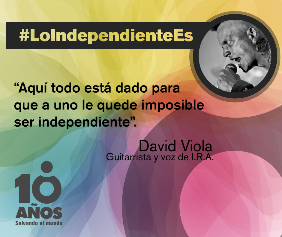 Para mí la independencia en el arte y en la música que es lo que hago yo, me parece que es lo autogestionado, lo que hace uno mismo sin estar esperando ayudas externas; la curiosidad de uno, lo que lo lleva a desarrollar la obra, a presentarla, distribuirla y vivir inmerso en ella sin necesidad de estar esperando una gran industria llena de rockstars y un montón de cosas. Es hacerlo uno mismo... esa es la independencia.