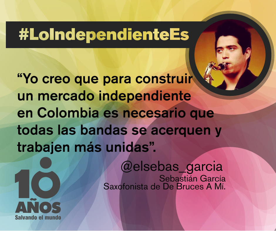 Hoy lo independiente para mí en el arte son todos los proyectos en todas las modalidades: la música, la pintura y todas las expresiones artísticas que tienen acceso a producir arte sin tantos recursos económicos. Ya no es necesario tener tanto dinero, ya que se tiene acceso a canales de distribución de la música y de sus productos artísticos a menos costo que años atrás.