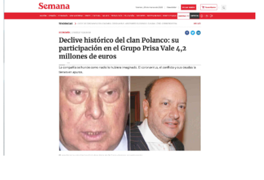 Luego, como sigue relatando el periodista, esa misma mañana, nuevamente en la sección de Economía la revista publicó otro artículo con el título: “Declive histórico del clan Polanco: su participación en el Grupo Prisa Vale (sic) 4,2 millones de euros”, diciendo además en el resumen que “la compañía se hunde como nadie lo hubiera imaginado”. Y nuevamente Julio Sánchez Cristo salía en la imagen.