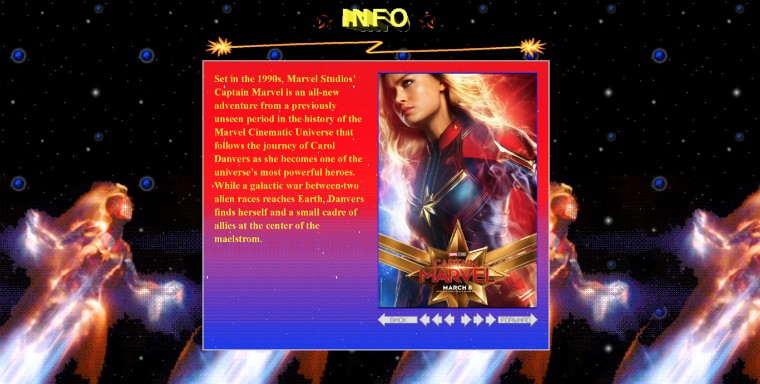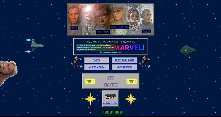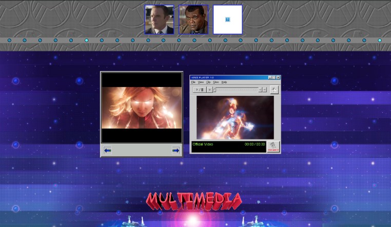 Recientemente se dio a conocer una página web inspirada en Capitana Marvel y en la época en la que se desarrolla, en los años 90, que tiene como fuente principal la letra Comic Sans MS, colores llamativos, un par de gifs, y un reproductor de video que nos recuerda a Windows 95-98-2000, inclusive tiene un sencillo juego.