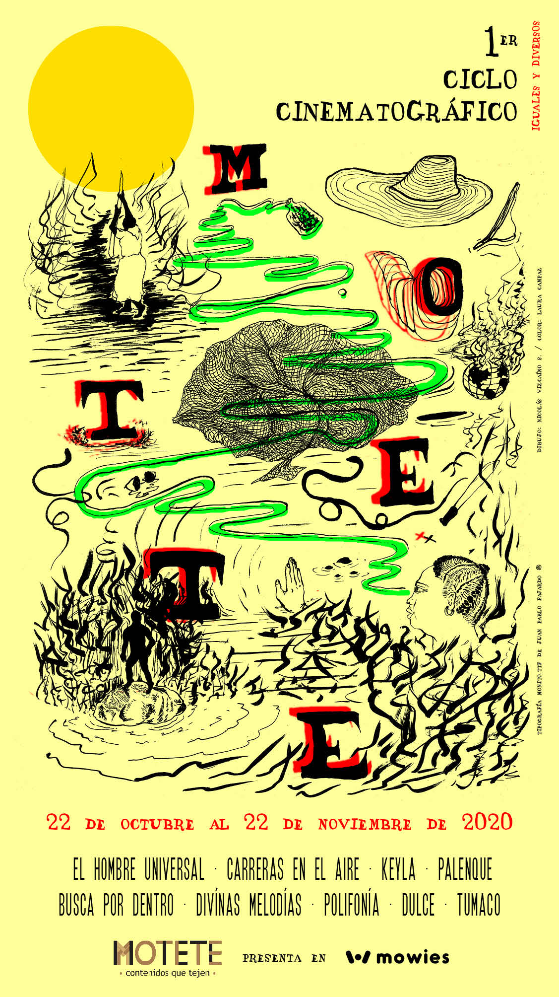 En el marco de sus actividades decidieron organizar la primera edición del Motete Cinematográfico: un ciclo de cine afrocolombiano que, desde el pasado jueves 22 de octubre, está albergado digitalmente en la plataforma Mowies. En esta ocasión la temática es "Iguales y Diversos", contando con nueve obras de diferentes formatos que rompen con la narrativa tradicional para mostrar miradas cruzadas de los pueblos afrocolombianos, sus identidades, discursos y tradiciones. La selección es la siguiente:
