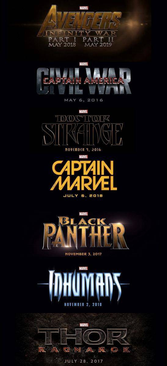 El 2017 será uno de los años más importantes en cuanto a estos estrenos se refiere ya que estarán listas la segunda parte de The Guardian Of The Galaxy (5 de mayo), la tercera de Thor, Thor: Ragnarok (28 de julio) y la primera de La Pantera Negra (Black Panther), primer superhéroe afrodescendiente, protagonizada por Chadwick Boseman (3 de noviembre).
