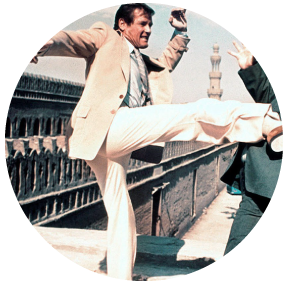 Ser el agente 007 no es nada fácil. O mentiras, sí lo es. Tener la capacidad divina o mágica de nunca morir, además de toda la tecnología de punta a su servicio (incluyendo el carro invisible y el zapato teléfono) lo hace todo más fácil. Lo que sí es difícil es serlo por más de una década, como lo hizo el actor británico Sir Roger George Moore. El sucesor de Sean Connery y antecesor de Timothy Dalton, interpretó de 1973 (Live and Let Die - Vive y deja morir) a 1985 (A View to a Kill - En la mira de los asesinos) al agente secreto más famoso, seductor, ágil, adinerado y de buenas del cine mundial.