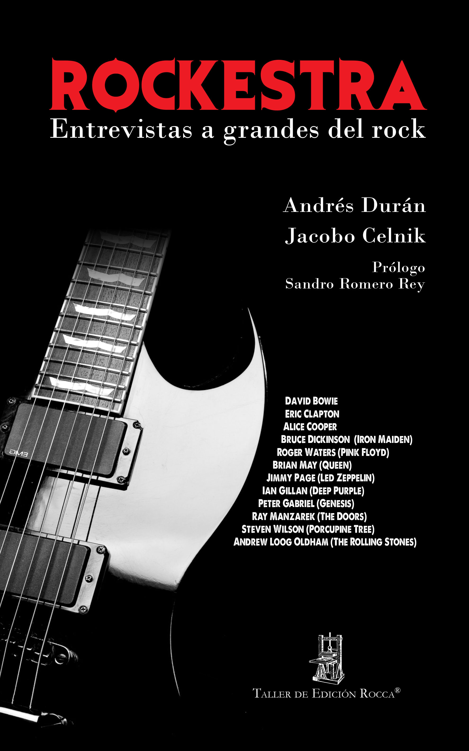 Rockestra, entrevistas a grandes del rock (Taller de Edición Rocca, 2013) es un viaje por la historia del género a través de los testimonios de sus protagonistas. Guitarristas, bateristas, bajistas, teclistas, cantantes y productores unen sus anécdotas para crear una sola voz, desde las entrevistas de Andrés Durán y Jacobo Celnik, reconocidos periodistas musicales colombianos. Andrés, entre otros, es pionero de los programas de rock, metal y blues en el país, y actualmente se desempeña como productor y realizador del Expreso Radiónica,