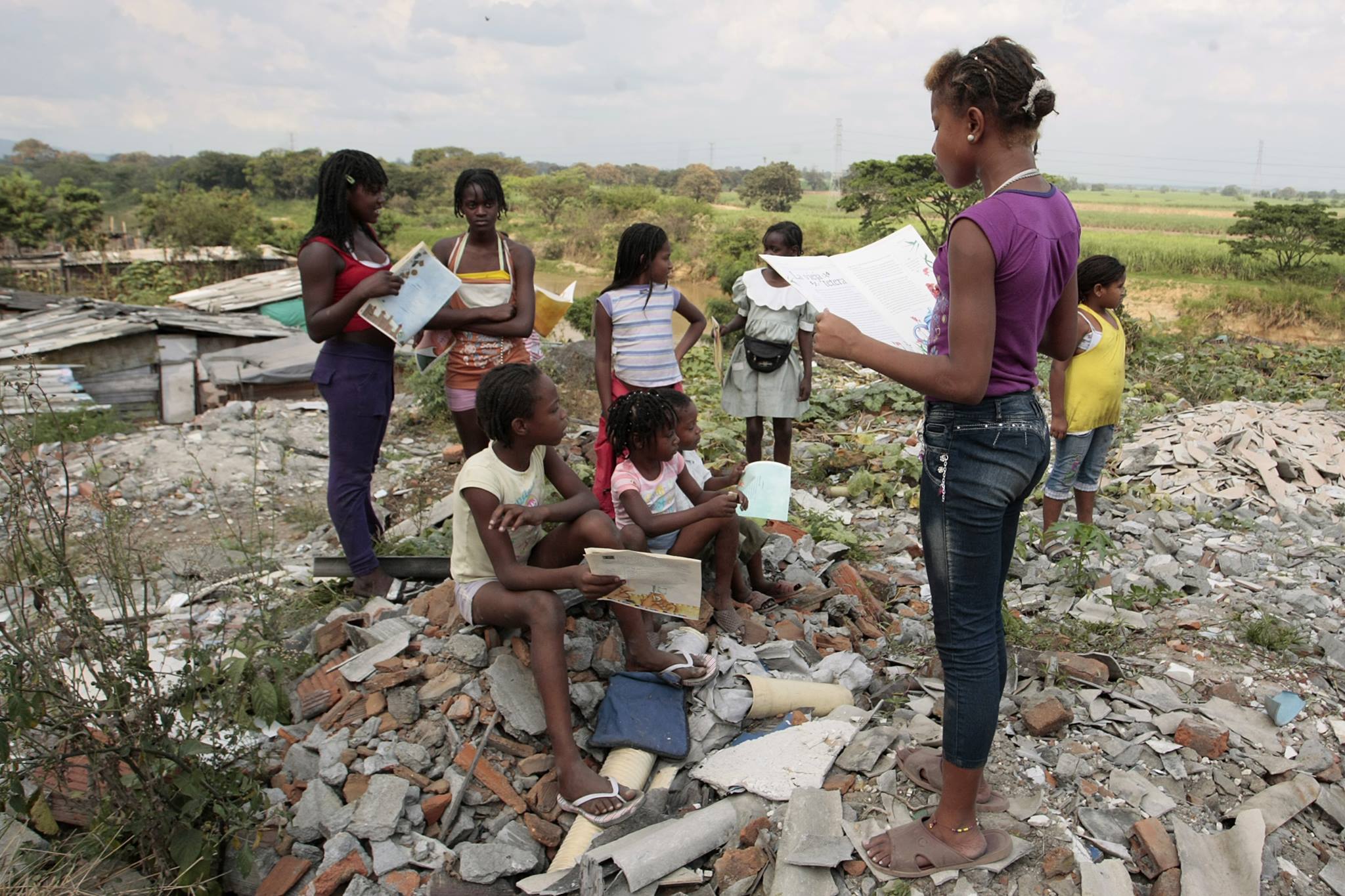 “15 días después, un niño se nos acercó pidiendo que lo volviéramos a hacer, que no esperáramos a que sucediera otra ola invernal para que les presentáramos esas actividades. Fue cuando empezamos a promover la lectura. Pedí prestado un libro en gran formato a la Biblioteca Departamental y en una esquina del barrio empecé a hacer lectura en voz alta”.