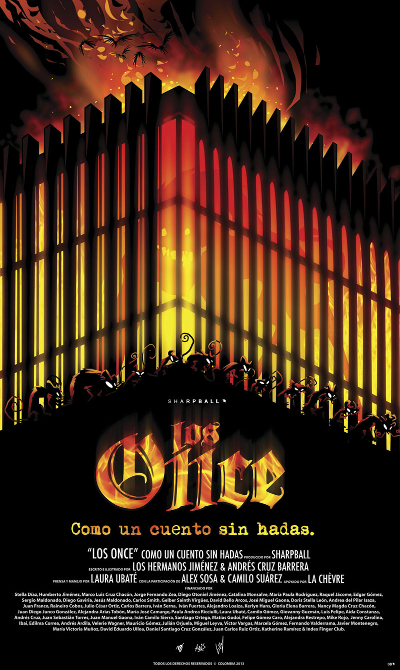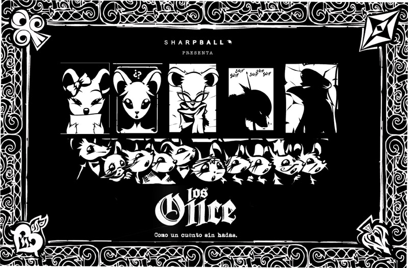 El músculo creativo detrás de "Los Once" comprende a tres amigos que trabajan bajo el nombre de Sharpball. Contamos en el momento con el apoyo de Laura Ubaté en el apartado de prensa y manejo. Desde hace unos años nos hemos visto trabajando en distintas empresas, a veces juntos, otras veces no, pero hemos logrado mantener un ritmo creativo que nos ha permitido generar contenido propio y trabajos merecedores de prestigio nacional e internacional. Esto va desde la dirección y producción de videoclips nominados a premios Shock e In Vitro Visual, ilustraciones para libros de arte de UDON y Capcom, hasta algunas celebradas aplicaciones para Internet y dispositivos móviles. Actualmente podemos afirmar que "Los Once" es una adición muy valiosa al creciente portafolio del equipo.
