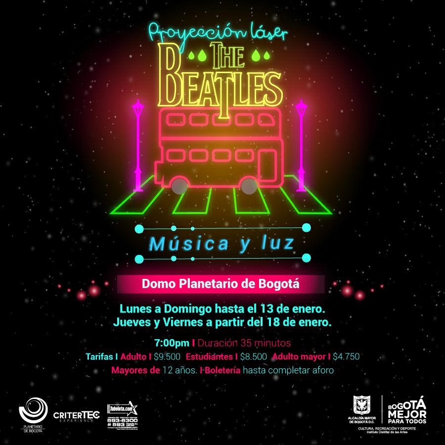 Sí, The Beatles, catalogada como una de las agrupaciones más exitosas a nivel comercial en el universo rockero que tanto nos gusta, y quienes además dejaron un gran legado no solo musicalmente sino también en el ámbito político y social, estarán en nuestro país, en el Planetario de Bogotá, pero esta vez, representadas con luces y sonidos que parecen venidos de otro planeta.