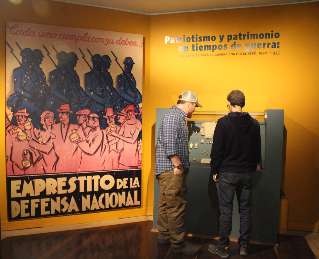 Esta exposición gira entorno a las piezas de oro y algunas piedras preciosas que fueron donadas por los ciudadanos en 1932 para financiar la guerra entre Colombia y Perú. Los visitantes del museo podrán encontrar objetos relacionados con el contexto de la guerra, fotografías, extractos de prensa de la época y las alhajas de la defensa nacional. Se busca a través de estos objetos dar un contexto histórico frente al panorama de ambos países, además de dar la oportunidad a la ciudadanía de distinguir un conjunto de piezas que por su excepcional calidad y suntuosidad en los materiales de elaboración, poseen un significado intrínseco y son vitales para el entendimiento de la historia nacional.