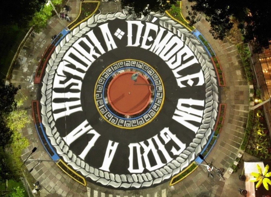 El espacio llamó la atención de un grupo de artistas que intervinieron las caras del pedestal que mira hacia cuatro direcciones o cuatro puntos energéticos, de acuerdo a la simbología Inca. Así lo cuenta el muralista, Psylo Sabin: “Pusimos estos animalitos en la plaza como un amuleto de protección para nuestro territorio y las dignas luchas. Queríamos una representación simbólica que se saliera del antropocentrismo, evocando una magia que está presente en los amuletos y en los talismanes”.