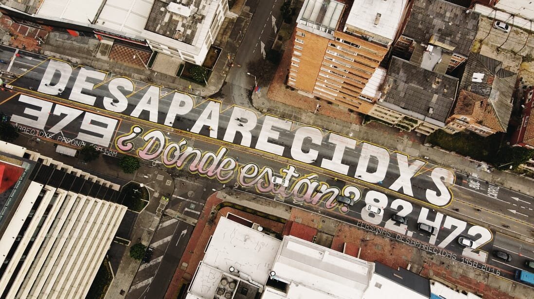 La acción de cara al edificio de la JEP es un grito frente a la desaparición, a la institucionalidad, dice. Después de que pintaron el mural, al domingo siguiente, llegaron algunos miembros de la Secretaría de Movilidad y les dijeron que iban a borrarlo, nos contaron desde el colectivo.