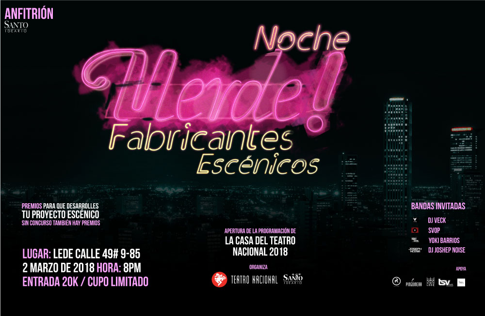 Igualmente, quienes hagan parte de esta primera versión de ‘Merde! Noche de fabricantes escénicos’ participarán en la entrega de algunos estímulos como: un día de cámara de cine, graficación de una pieza gráfica (afiche o brochure), clínica coreográfica, clínica de dramaturgia, una sesión de fotos, dos noches en el Rua Hostels y tarjetas VIP para ver espectáculos de teatro.