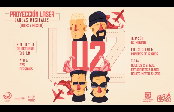 El Planetario de Bogotá continúa ampliando su oferta de shows láser después de presentarnos ‘The Wall’, ‘Universo Cerati’ y actualmente ‘The Dark Side of The Moon’. Ahora llega U2 para los fanáticos de la música y del rock, a propósito de su primera venida a Colombia.