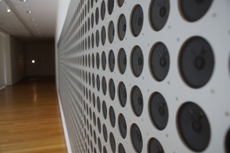 Por su parte, el estadounidense Richard Garet ubica una canica sobre un tocadiscos antiguo en "Before Me", y su compatriota Tristan Perich une 1.500 altavoces para hacer "Microtonal Wall", un tapiz sonoro, que cuando el visitante pasa a su lado, desvela su falsa apariencia monotonal a través de fluctuaciones de sonido.
