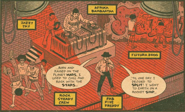 Desde Pennsylvania, Estados Unidos, llega el trabajo gráfico de Ed Piskor ,caricaturista, que le dio vida a ‘Hip Hop Family Tree’ un serie de cómics de entregas semanales donde se narran historias que suceden alrededor del hip hop en la década de los 80. Ha sido aclamada como una de las manifestaciones gráficas más importantes por su contenido y forma.