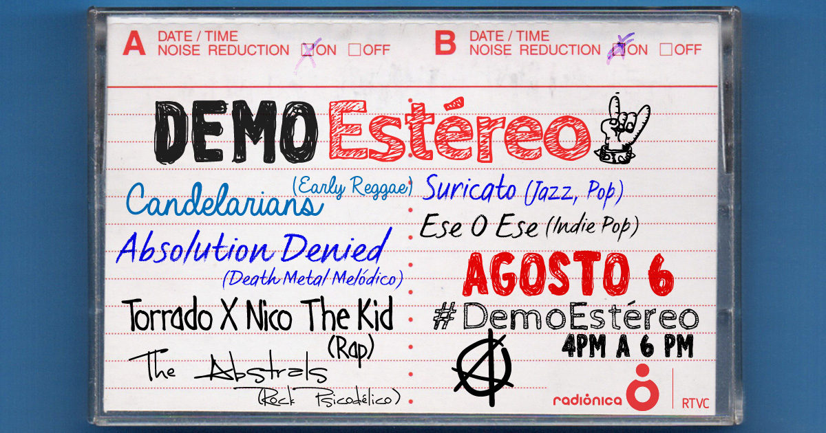 Si las respuestas a las anteriores preguntas son afirmativas, escríbannos (isamudio@rtvc.gov.co) y envíennos esas canciones que componen las primeras fases de creación de las bandas nacionales del futuro. En Demo Estéreo, al aire todos los domingos (4:00 p.m.) tenemos un lugar reservado para todos aquellos que buscan dar a conocer sus primeros sonidos.