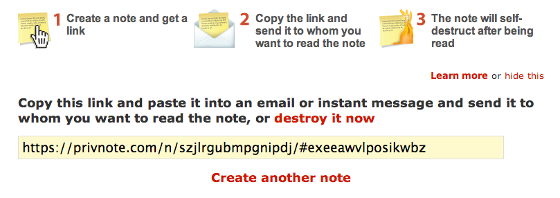 Privnote está hecha para compartir notas de manera privada y una sola vez, con un link que se destruye una vez abierto. Fue creada por los uruguayos de insophia.com para compartir información confidencial, de trabajo o personal.