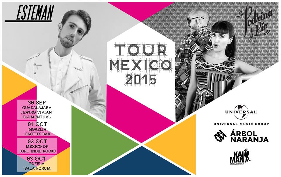 Tour México Esteman + Pedrina y Rio... así se llama el tour que lleva a estas agrupaciones colombianas por el país de los mariachis, los buenos escritores y directores, los frijóles, los tacos, las carnitas, las quesadillas, las enchiladas, los burritos (y todo eso rico que se hace por allá).