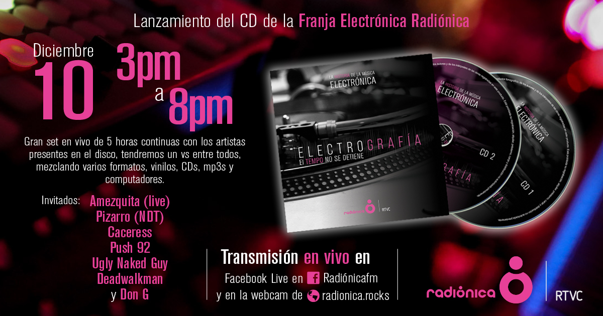 Los esperamos desde las 3 de la tarde conectados a través de nuestras diferentes frecuencias a nivel nacional y en nuestras distintas redes sociales (podrán ganar discos). Gracias por bailar junto a la mejor franja electrónica de la radio colombiana.