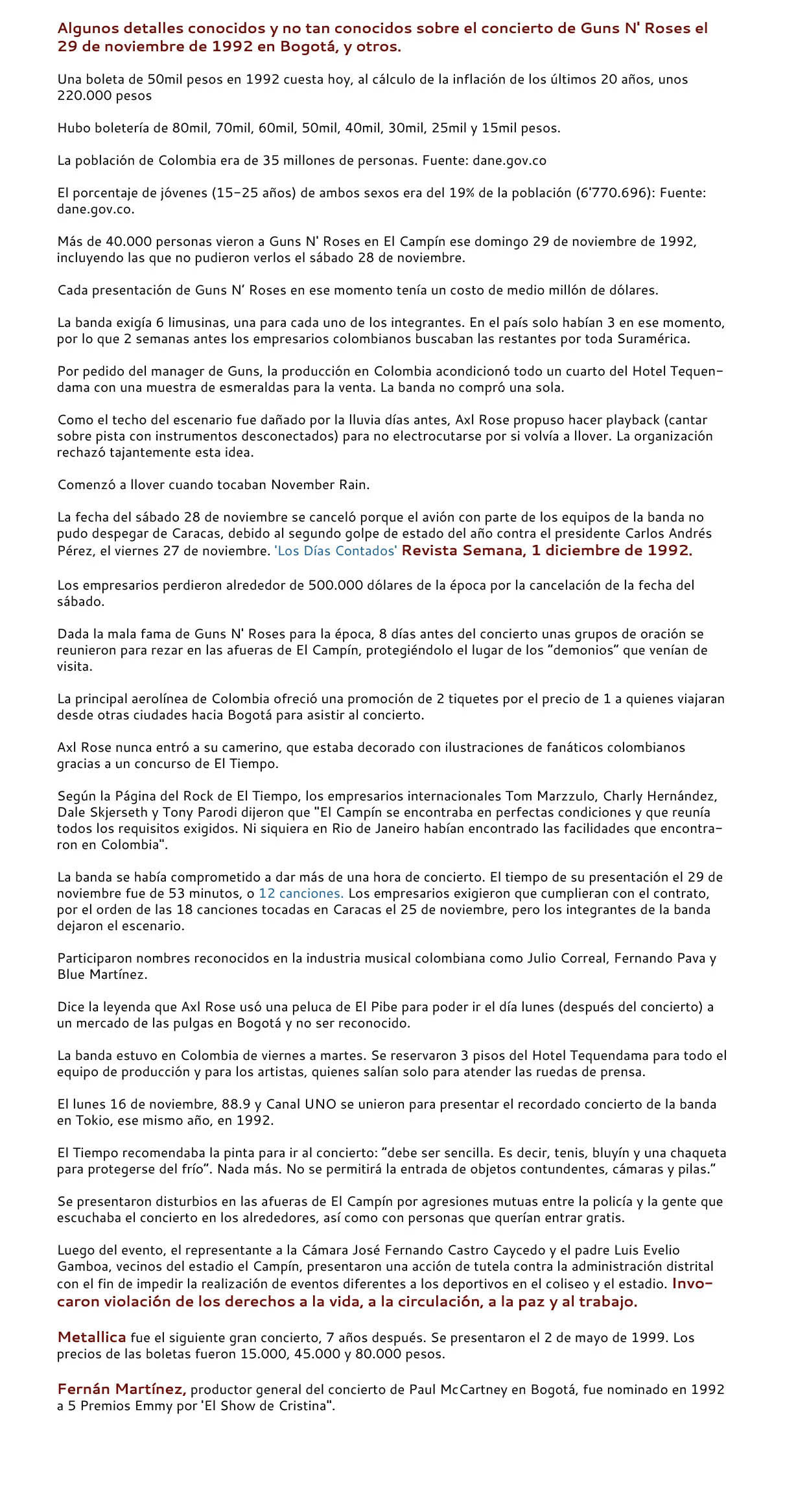 Mala Obsesión: curiosidades de la visita de Guns en 1992