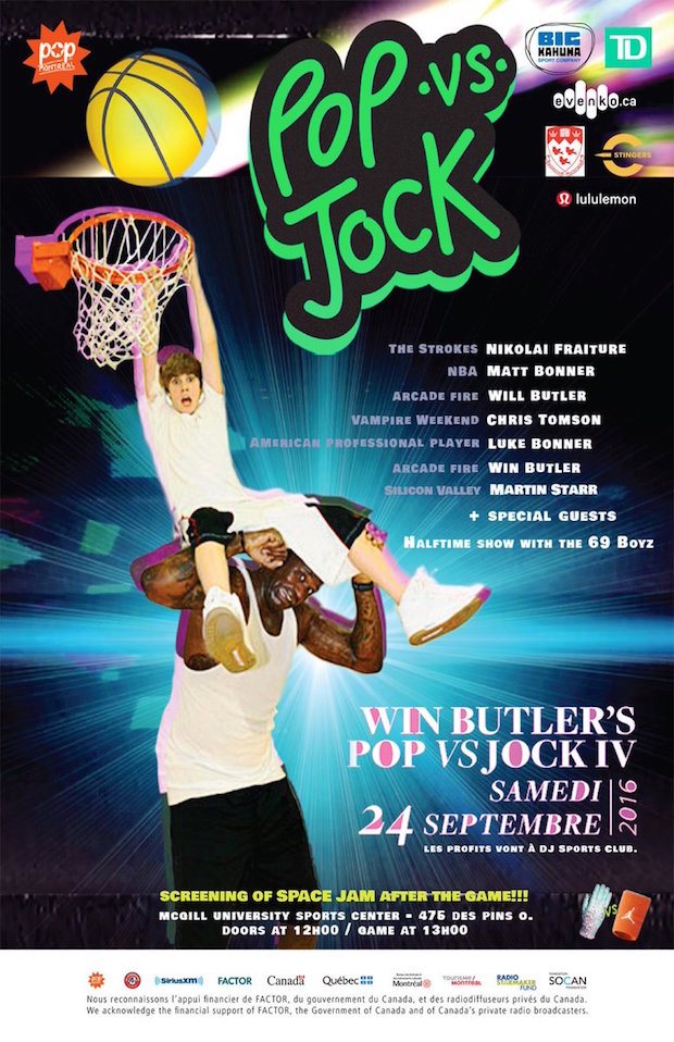 “POP vs. Jock IV” es el nombre del torneo de baloncesto benéfico en el cual participará un equipo de estrellas musicales. Se trata de el equipo conformado por los hermanos Win y Will Butler de Arcade Fire y miembros de otras agrupaciones como Nikolai Fraiture, bajista de The Strokes, Chris Thomson, baterista de Vampire Weekend y Martin Starr, actor de Silicon Valley.