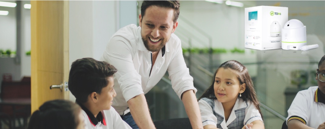 ¿Qué es? TOMi es asistente personal de los maestros que inspiran en los países en vía de desarrollo. Un dispositivo portable creado en Medellín que ya está en las manos de más de 10 mil maestros en 10 países. ¿Qué hace? ¿Para qué sirve? TOMi ayuda a los maestros a crear clases interactivas en pocos minutos, a partir de miles de contenidos educativos precargados, simula internet en las aulas que no tienen conectividad, llama a lista, convierte cualquier pizarra en una superficie interactiva, hace realidad aumentada y califica exámenes mientras gamifica la experiencia educativa dentro del aula de clase y reporta a los padres de familia el avance de los estudiantes. ¿Quiénes consumen esta tecnología? Esta pensado para Maestros. Por eso son ellos el principal cliente, así como los gobiernos y fundaciones para sus proyectos de educación.