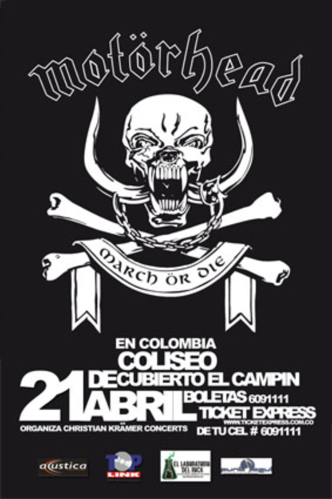 Uno de los dioses del panteón metalero más venerados es Lemmy Kilmister y sin duda Motörhead es el trío más influyente del rock pesado. Por eso cuando llegaron a Colombia en 2009, fue como si viniera el Papa. El escenario fue el Coliseo Cubierto el Campín y a pesar de que el sonido no fue el mejor y solo fueron unas 4 mil personas, el hecho de que estos músicos, que en ese entonces ya eran unos viejos curtidos del rock, hayan tocada en Bogotá es una muestra de la fuerza y relevancia que tiene el metal en Colombia.