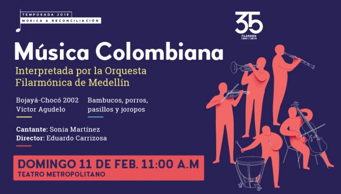 Bambucos porros, cumbias, pasillos y joropos, son los géneros musicales colombianos que tendrán un papel protagónico en la primera presentación del año de la Orquesta Filarmónica de Medellín. La reconciliación como concepto será el eje transversal de su año musical.