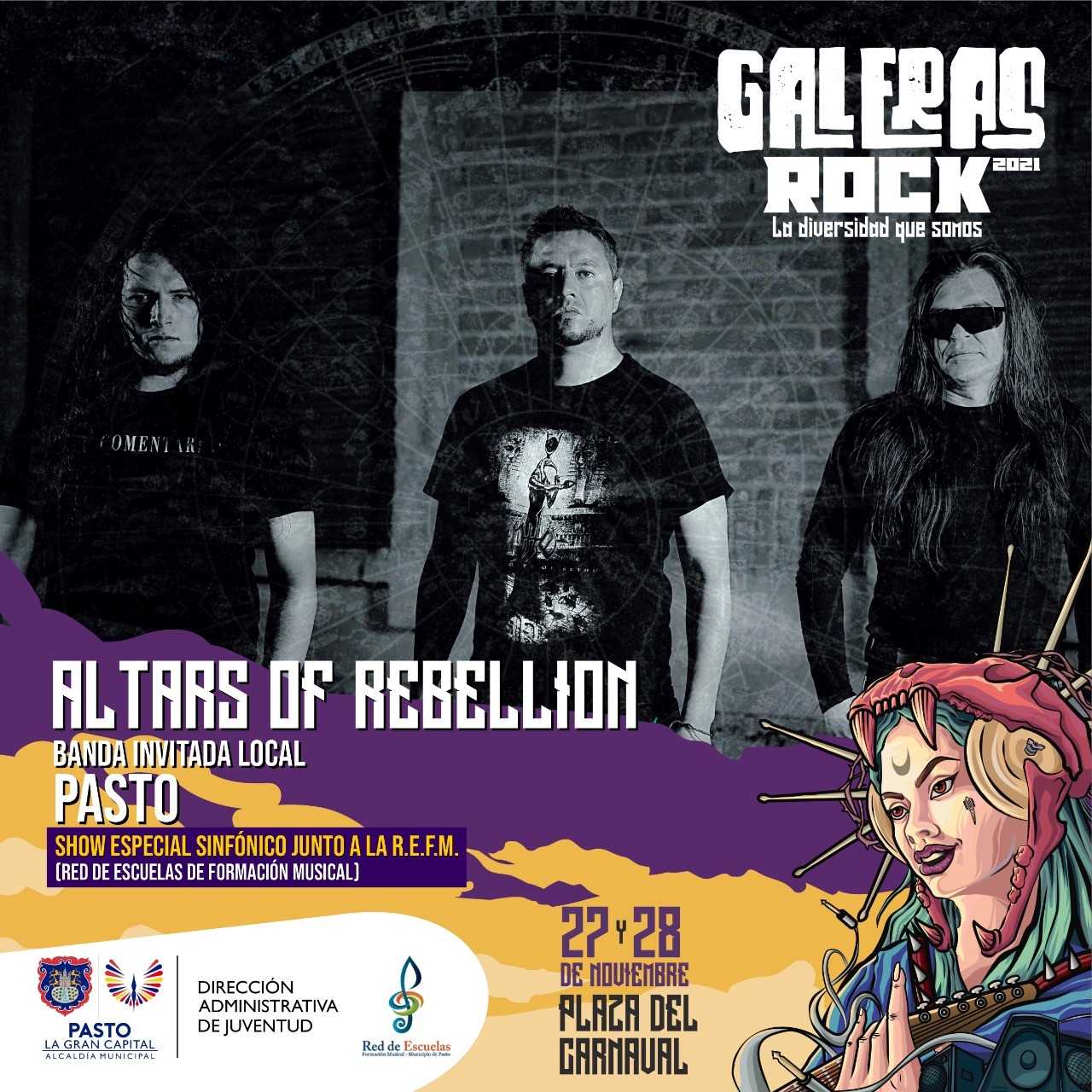 Un compromiso del festival que se mantiene con el paso de cada edición es invitar una banda regional que se destaque por su trabajo sólido, constante y de calidad, este año llegará a la tarima del Galeras Altars of Rebellion, con un show especial sinfónico junto a la Red De Escuelas De Formación Musical De Pasto.