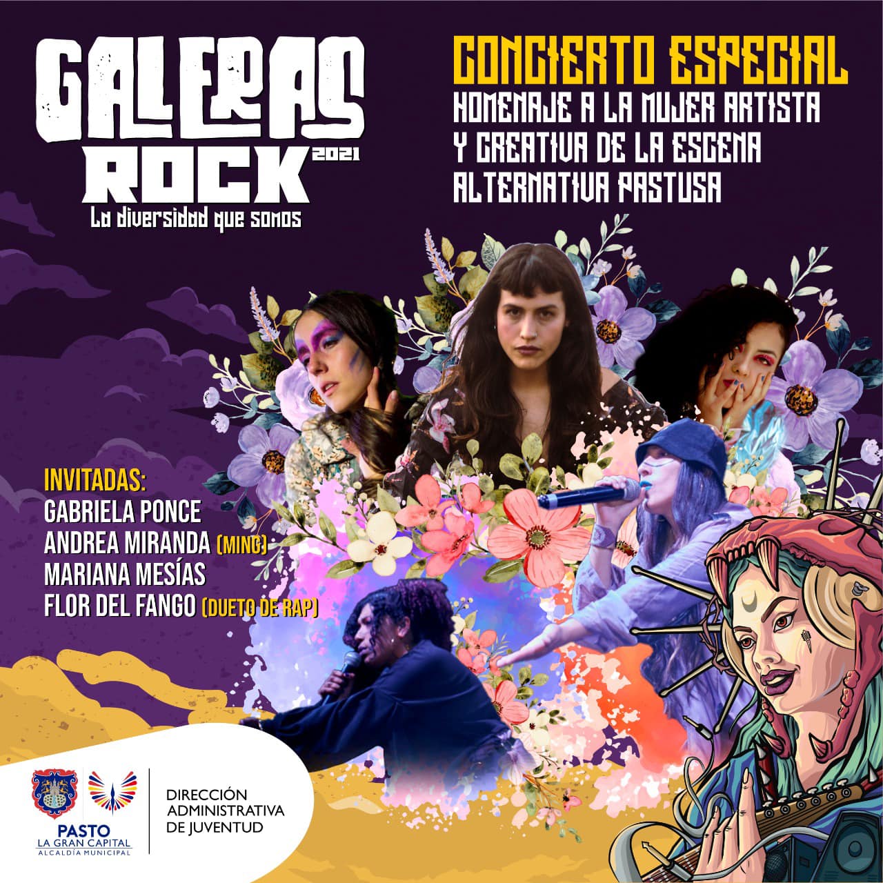 Es por eso que, este año el Galeras Rock tendrá en escena un concierto especial, único en la historia del Festival, junto a La Mari Mesias, Gabriela Ponce, Flor de Fango y Andrea Miranda.