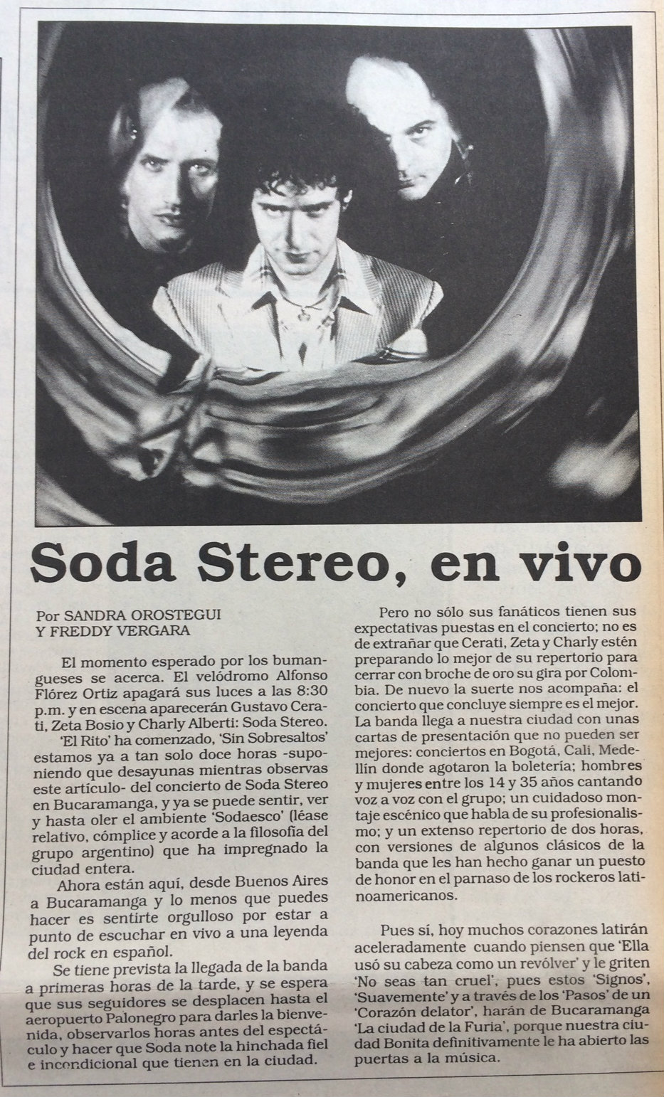 El día que Soda Stereo se presentó en Bucaramanga (y casi nadie los vio)