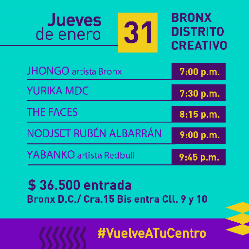 En el segundo día del Festival Centro 2019 el Bronx Distrito Creativo será el punto de encuentro para todas las personas que a partir de las 7:00 pm quieran disfrutar de una noche en compañía de cinco artistas que harán latir el corazón de los asistentes.