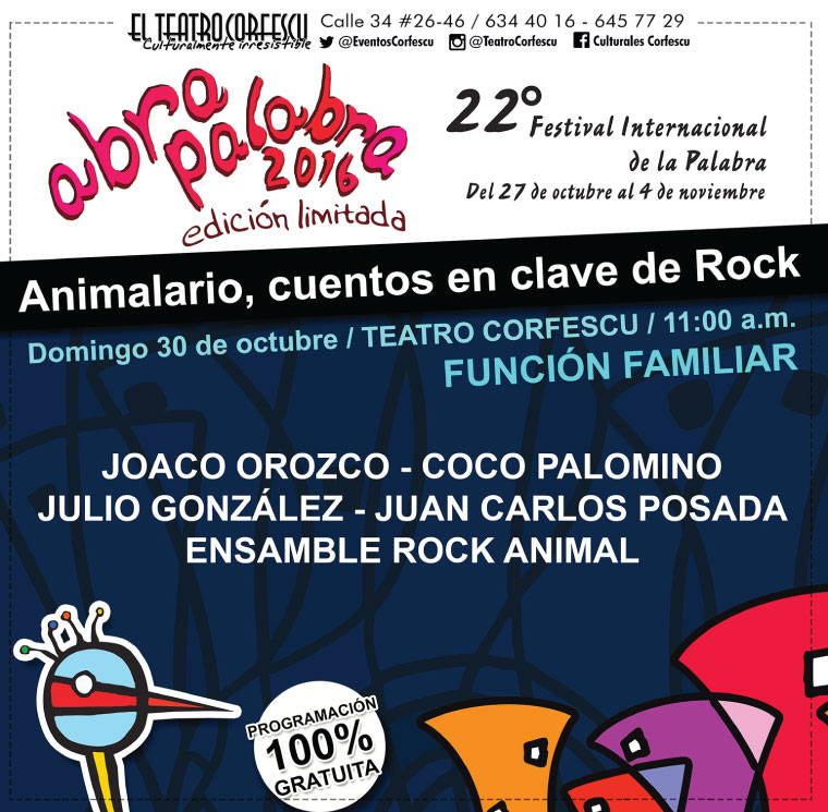 Los eventos son de entrada libre, sin embargo, para participar en algunos de ellos es necesario reclamar boleta. Para conocer toda la información de boletería pueden comunicarse a los números 6344016/6457729 o a través de su página en Facebook. Esta es la programación completa de Abrapalabra 2016: