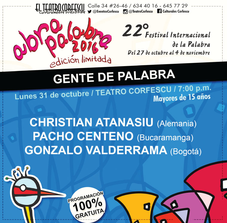 Del 27 de octubre al 4 de noviembre llega a Bucaramanga el Festival Internacional de la Palabra, Abrapalabra.