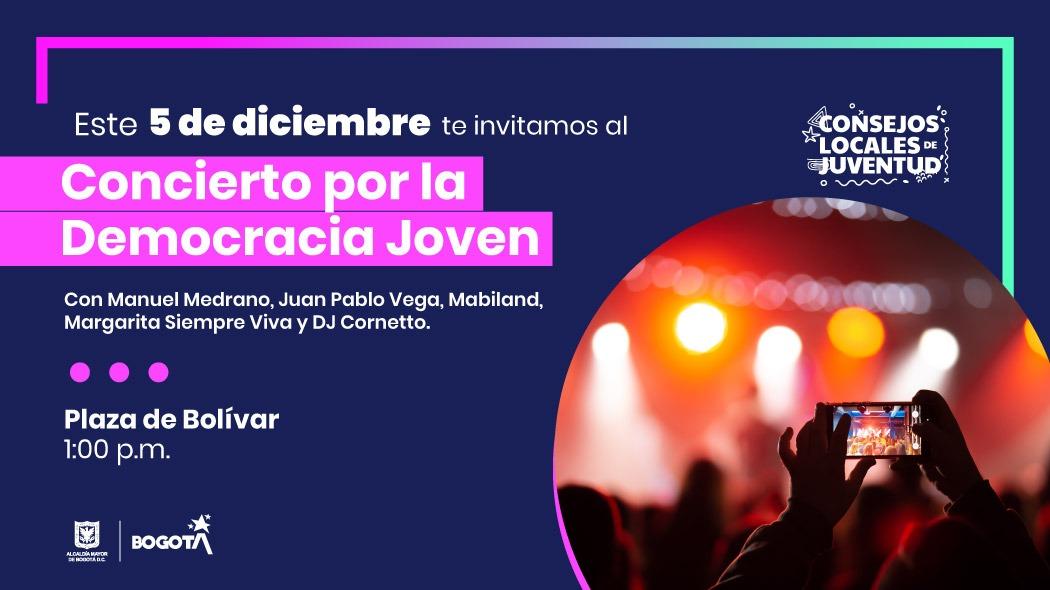 El nombre 14/28: Concierto por la Democracia Joven hace referencia al rango de los jóvenes votantes, sin embargo, el evento está abierto a toda la ciudadanía. Las puertas de La Plaza de Bolívar se abrirán a la 1:00 p.m. y los shows comenzarán a las 3:00 p.m. e irán hasta las 7:30 p.m.; esta presentación también hace parte de la programación navideña de la Alcaldía de Bogotá y del Instituto Distrital de las Artes - Idartes.
