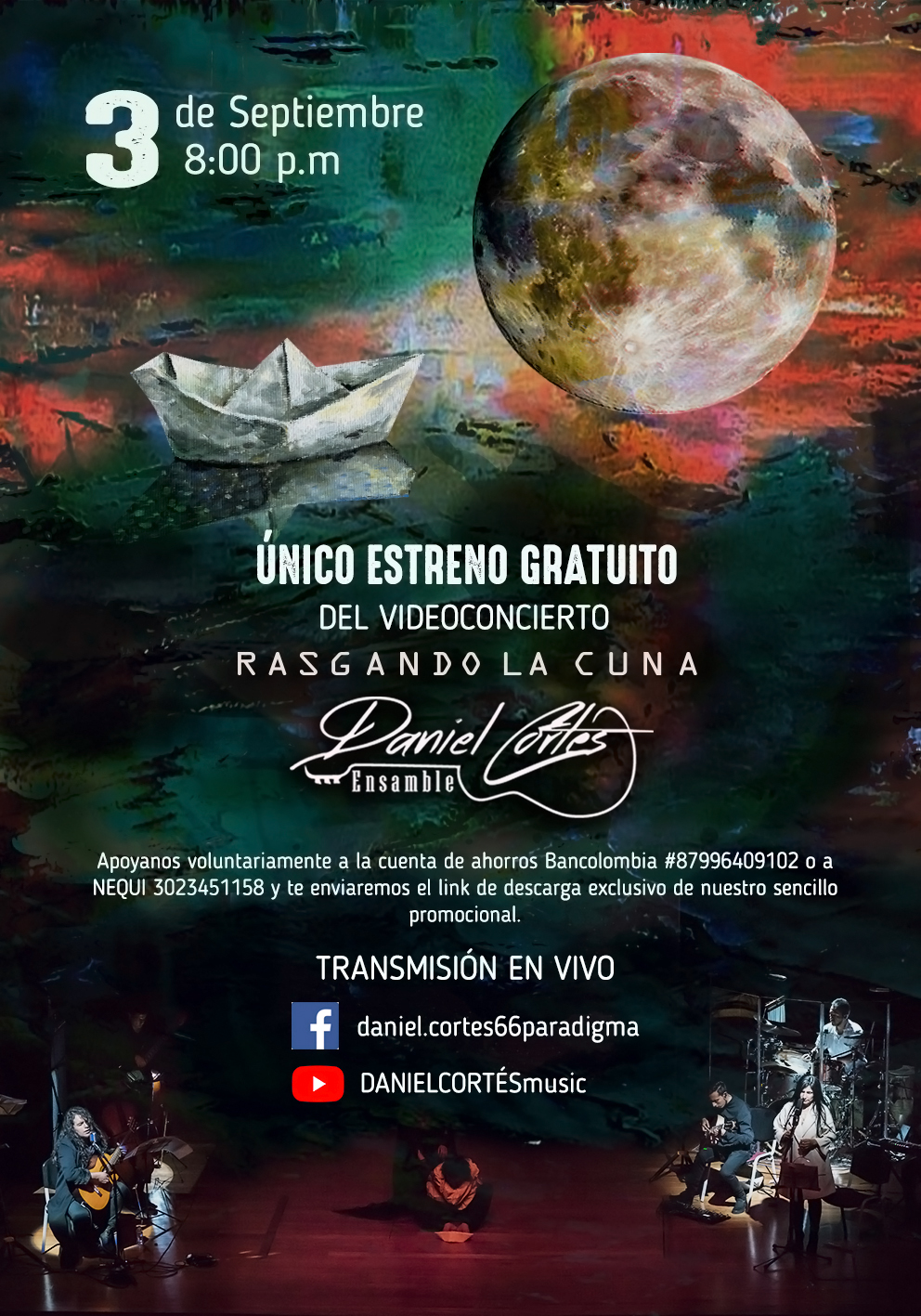 En una apuesta por fortalecer la industria cultural del país, y tras un arduo trabajo con un grupo interdisciplinar en el campo de las artes, el laboratorio musical liderado por el guitarrista y cantautor pastuso, Daniel Cortes, presentará su más reciente producción en formato audiovisual este 3 de septiembre a las 8:00 p.m.