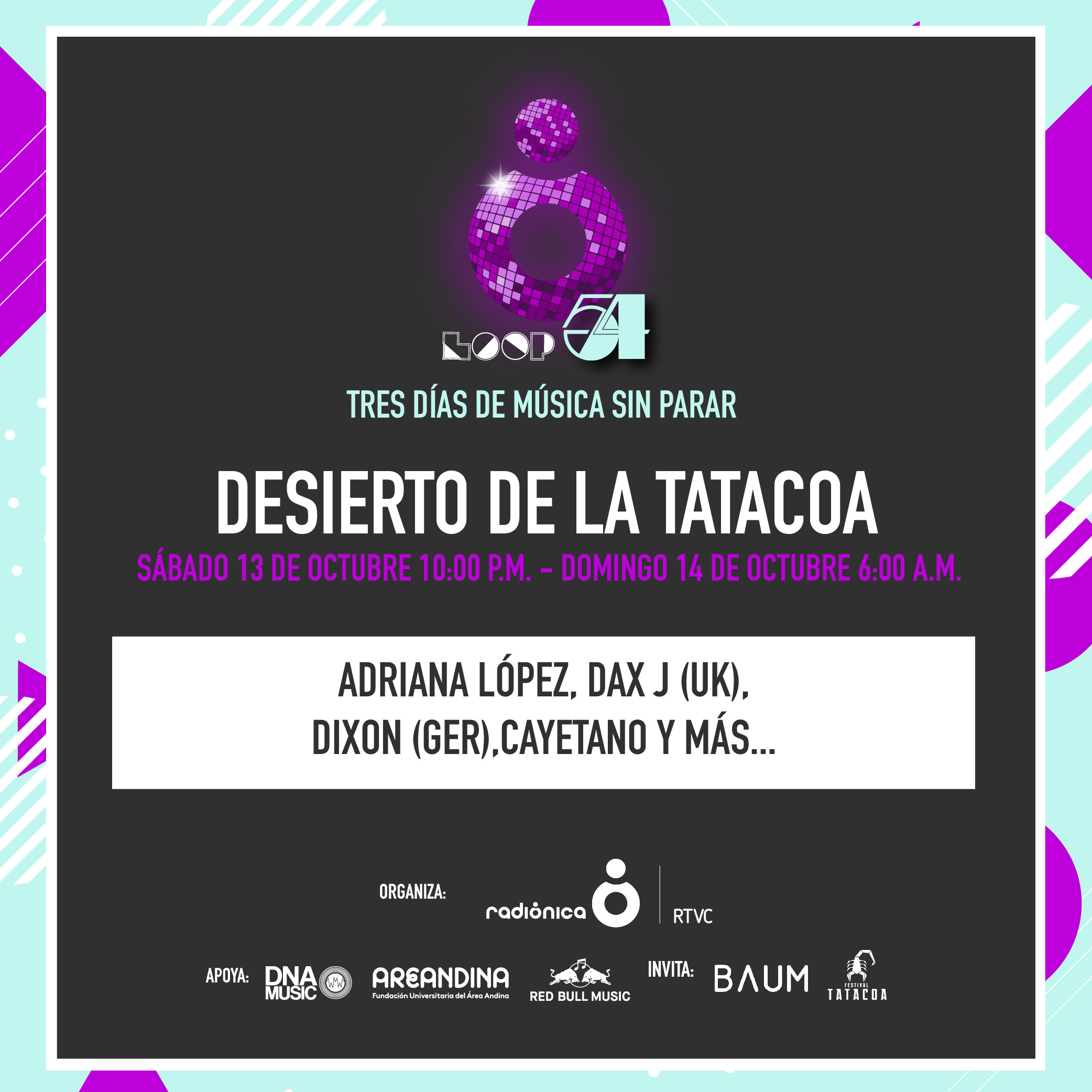 Se viene Loop 54, un circuito sonoro que creamos en Radiónica en donde el encuentro en torno al baile y a la música es lo más importante. No solamente será una transmisión radial sin precedentes en la historia de la radio en Colombia, también será la prueba de que la radio pública es un espacio en donde por medio de eventos innovadores, de calidad y pensados para diferentes audiencias, logramos visibilizar y disfrutar de las manifestaciones artísticas.