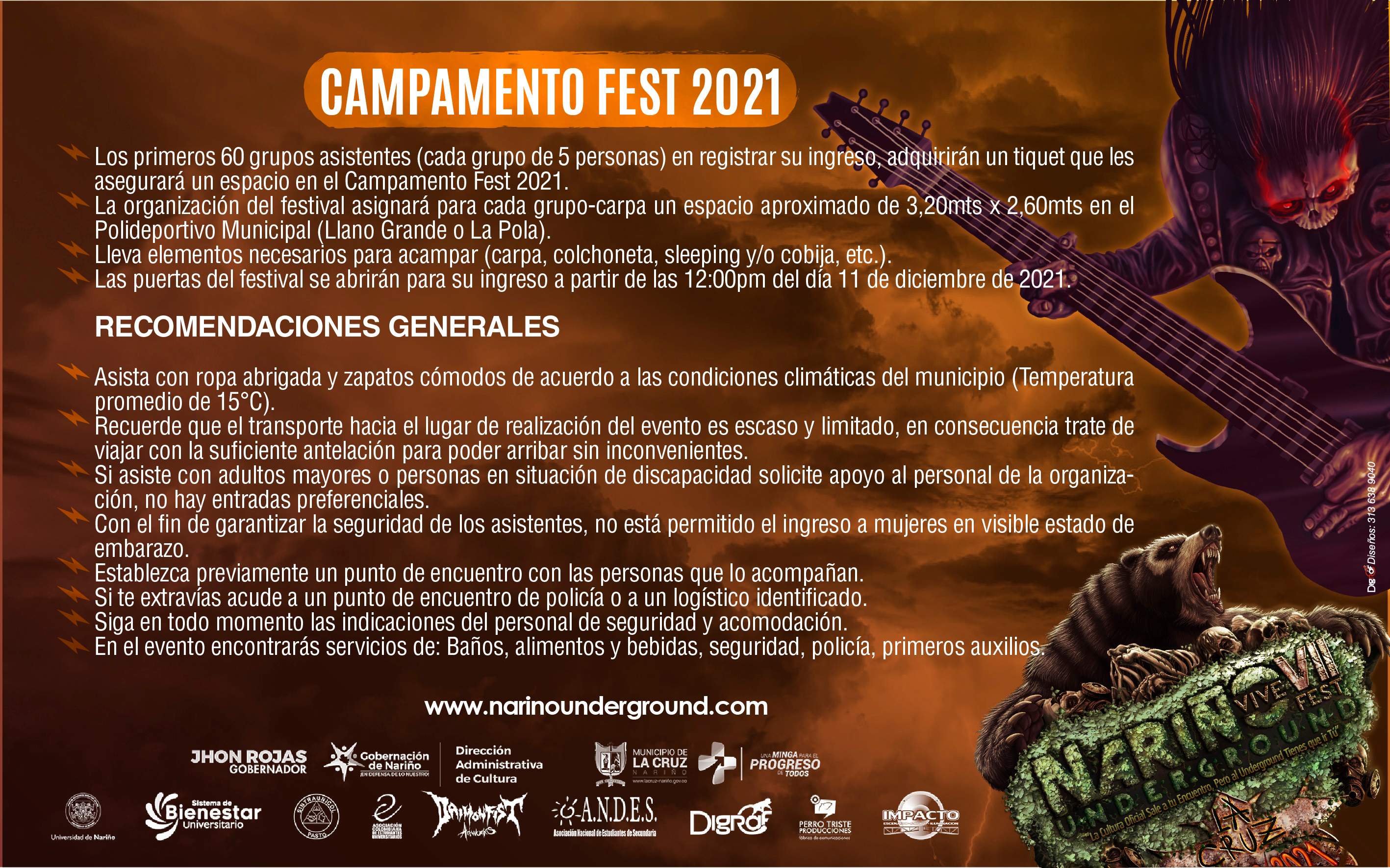 El 11 y 12 de diciembre el norte de Nariño vibrará con los riffs de guitarra, solos de batería y voces guturales que integran el cartel de esta séptima edición. Como es costumbre, la organización brindará un espacio de campamento para que los asistentes, que son entre 2.500 a 4.000 puedan acomodarse durante los días del evento. Este será en los polideportivos municipales, aquí algunas recomendaciones: